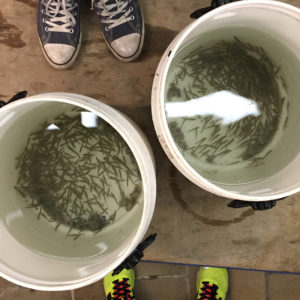 With the three of us we managed to catch about 300 of them in half an hour by wading through the shallow waters. Most of the fish are likely 1st-years, but we also caught a couple older individuals that were huge, close to 10 cm!